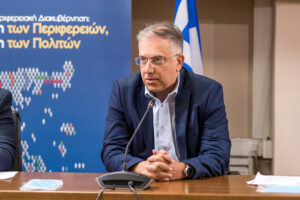 Εμείς όμως που είμαστε εδώ, εσείς οι εκλεγμένοι Περιφερειάρχες, εκπροσωπείτε το σύνολο του ελληνικού λαού, το σύνολο των Περιφερειών, οφείλετε και οφείλουμε κι εμείς από την σκοπιά μας, σε κάθε Περιφέρεια, να έχουμε ετοιμότητα όλων των μηχανισμών, ισχυρό το αίσθημα ενότητας και της αυτοπεποίθησης των Ελλήνων». Όπως τόνισε ο κ. Θεοδωρικάκος
