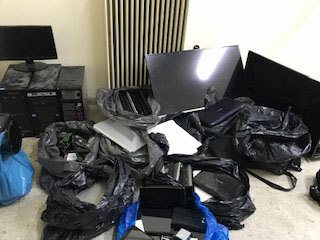 Κατασχέθηκε πλήθος κλοπιμαίων, όπως πάνω από (350) φορητοί ηλεκτρονικοί υπολογιστές, (300) κινητά τηλέφωνα, καθώς επίσης μαχαίρια, στιλέτα, διαρρηκτικά εργαλεία, το χρηματικό ποσό των (16.000) ευρώ και (60) συσκευασίες κάνναβης έτοιμες προς διάθεση στην παράνομη αγορά ναρκωτικών σε διάφορες «πιάτσες»