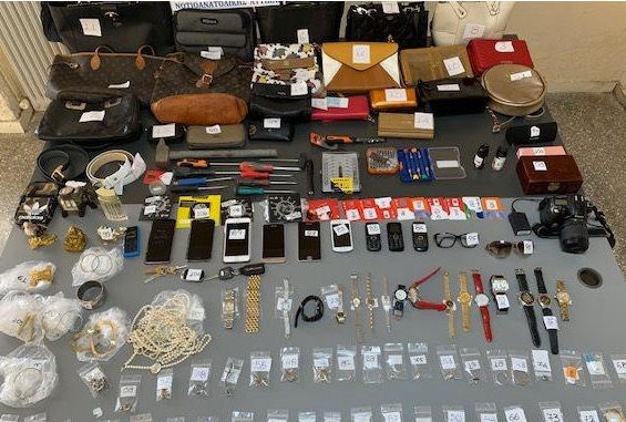 Στην κατοχή τους και μετά από έρευνες σε οικίες και χώρους βρέθηκαν και κατασχέθηκαν πλήθος από ρολόγια χειρός, κοσμήματα, γυναικείες τσάντες, κινητά τηλέφωνα και κάρτες sim, δύο σπρέι πιπεριού, διαρρηκτικά εργαλεία, το χρηματικό ποσό των επτακοσίων ευρώ, καθώς και δύο αυτοκίνητα που χρησιμοποιούσαν για την εγκληματική τους δράση.
