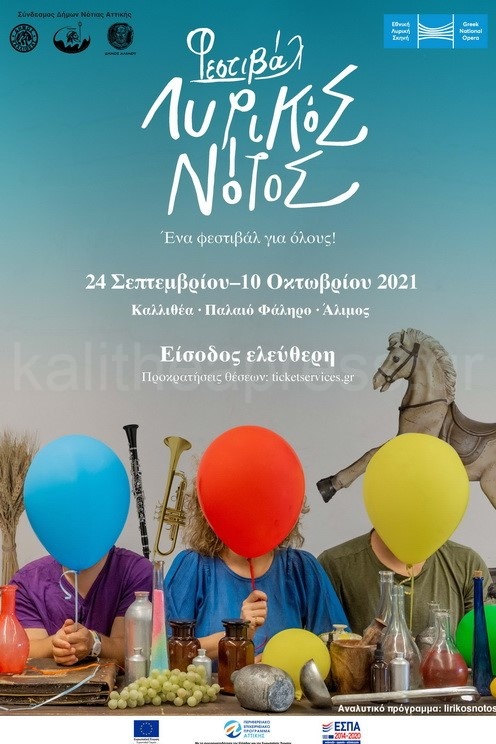 Το φεστιβάλ διοργανώνουν η Εθνική Λυρική Σκηνή και ο Σύνδεσμος Δήμων Νότιας Αττικής – Καλλιθέα, Παλαιό Φάληρο, Άλιμος -, από τις 24 Σεπτεμβρίου ως τις 10 Οκτωβρίου, εγκαινιάζοντας μια συνεργασία που στοχεύει να είναι και το πρώτο βήμα στη δημιουργία ενός σημαντικού θεσμού. Το φεστιβάλ συγχρηματοδοτείται από την Ευρωπαϊκή Ένωση και από εθνικούς πόρους μέσω του Συνδέσμου Δήμων Νότιας Αττικής.