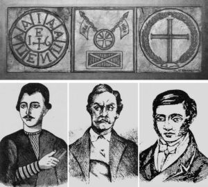Οι διανοούμενοι Εμμανουήλ Ξάνθος, Νικόλαος Σκουφάς και Αθανάσιος