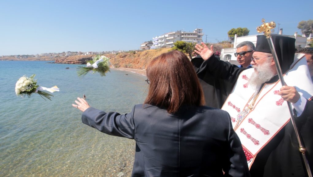 Στη συνέχεια η κυρία Σακελλαροπούλου μετέβη στην Αργυρά Ακτή, όπου πραγματοποιήθηκε Tρισάγιο.