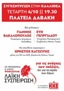 Γιάννης Βακαλόπουλος κεντρική Προεκλογική Συγκέντρωση Λαϊκής Συσπείρωσης Καλλιθέας στην πλατεία Δαβάκη Τετάρτη 4 Οκτωβρίου