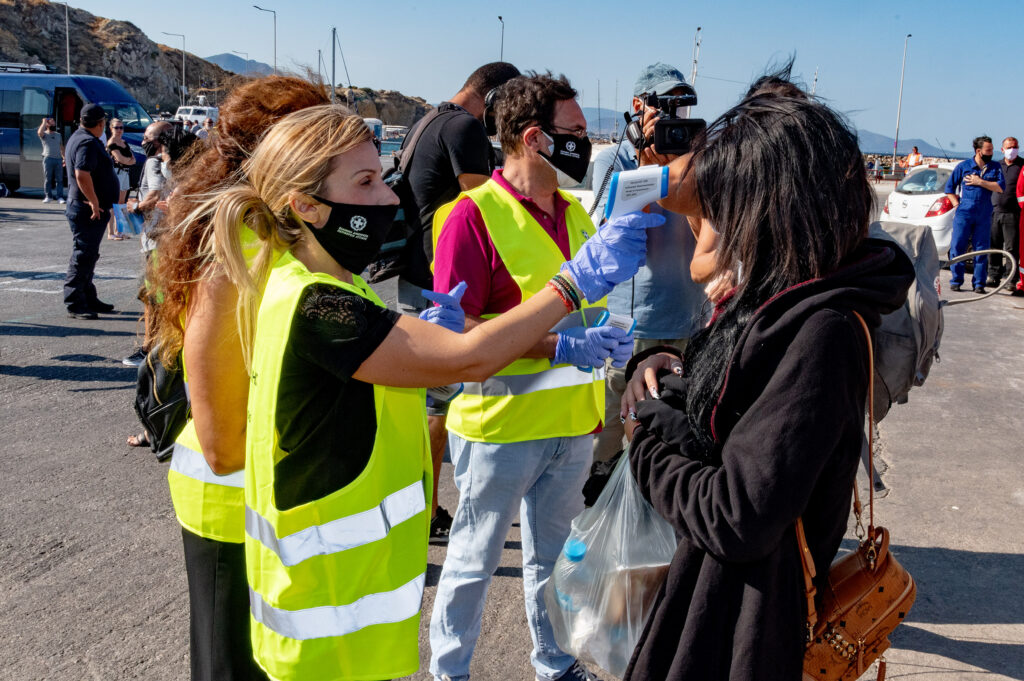 θερμομετρήσεις στους επιβάτες που επέστρεψαν και διένειμαν ενημερωτικό υλικό με οδηγίες προφύλαξης για τη μη διασπορά της επιδημίας, ενημερώνοντας με λεπτομέρεια τους ταξιδιώτες για τους κινδύνους μετάδοσης του COVID -19 στην κοινότητα. Έμφαση δίνεται για τις περιπτώσεις ασυμτπωματικών φορέων και δραστηριοτήτων που κατά την διάρκεια του ταξιδιού ενδέχεται να έχουν εκθέσει σε αυξημένο κίνδυνο μετάδοσης της νόσου τους πολίτες. Στο λιμάνι του Πειραιά παραβρέθηκε επίσης ο Αντιπεριφερειάρχης Υγείας Αθ. Βαθιώτης και στο λιμάνι της Ραφήνας παρόντες ήταν Αντιπεριφερειάρχης Οικονομικών Ν. Πέππας, ο Δήμαρχος Ραφήνας- Πικερμίου Ε. Μπουρνούς και η Διευθύνουσα Σύμβουλος του Οργανισμού Λιμένος Ραφήνας Δ. Γκικάκη.