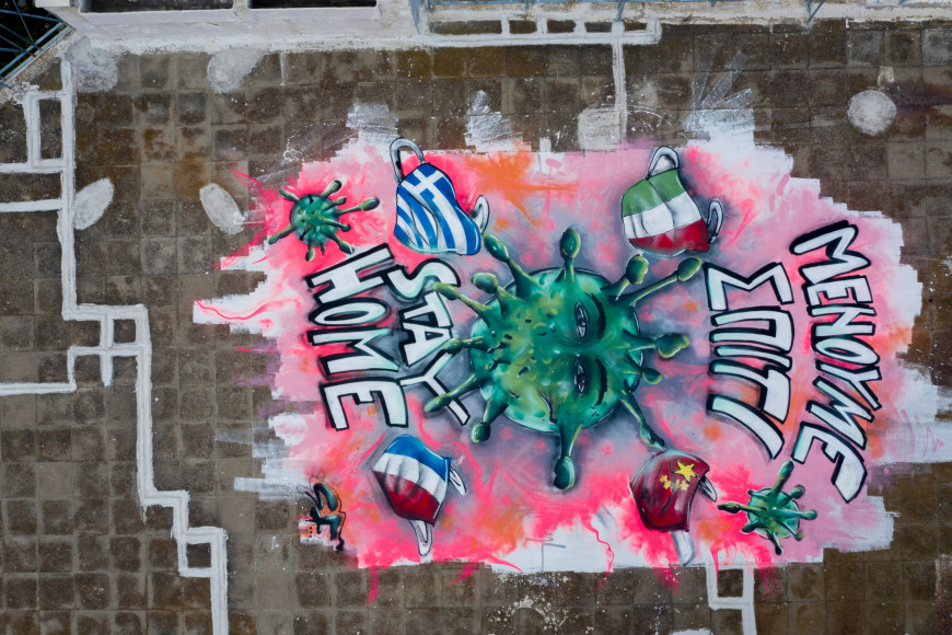Προ ημερών ξεκίνησε ένα γκράφιτι σε τοίχο της ταράτσας τού σπιτιού του με θέμα ένα πρόσωπο με χειρουργική μάσκα. Μέρες μετά, σχεδίασε ένα δεύτερο γκράφιτι παρουσιάζοντας τον ιό με ανθρώπινα χαρακτηριστικά που περιβάλλεται από σημαίες διαφορετικών χωρών. Το μήνυμα που συνοδεύει το έργο είναι: «Μένουμε σπίτι».