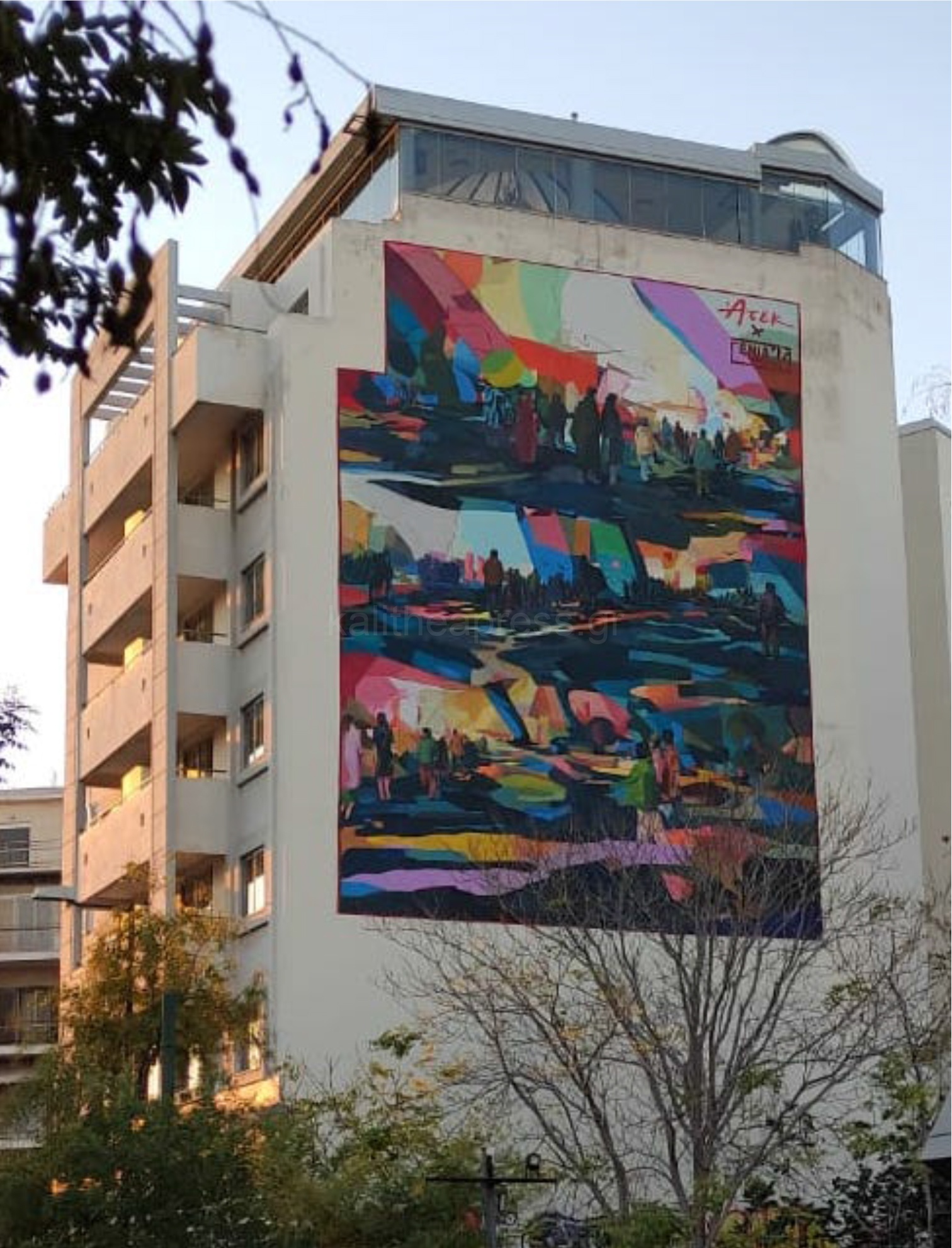 Ένα εντυπωσιακό έργο που δημιούργησε ο street artist Atek (Γιώργος Σκουρλής) και αποτυπώνει έναν από τους 17 Στόχους Βιώσιμης Ανάπτυξης του Οργανισμού Ηνωμένων Εθνών, τις «Βιώσιμες Πόλεις και Κοινότητες» (Στόχος 11). Με έμφαση στους κατοίκους των πόλεων, η τοιχογραφία με τα έντονα χρώματα, που μπορούν να παρατηρήσουν από μακριά όσοι διασχίζουν την οδό Καλλιρόης κάτω από τη γειτονιά της Ακρόπολης, αναδεικνύει τη σύγχρονη ανάγκη δημιουργίας βιώσιμων πόλεων.
