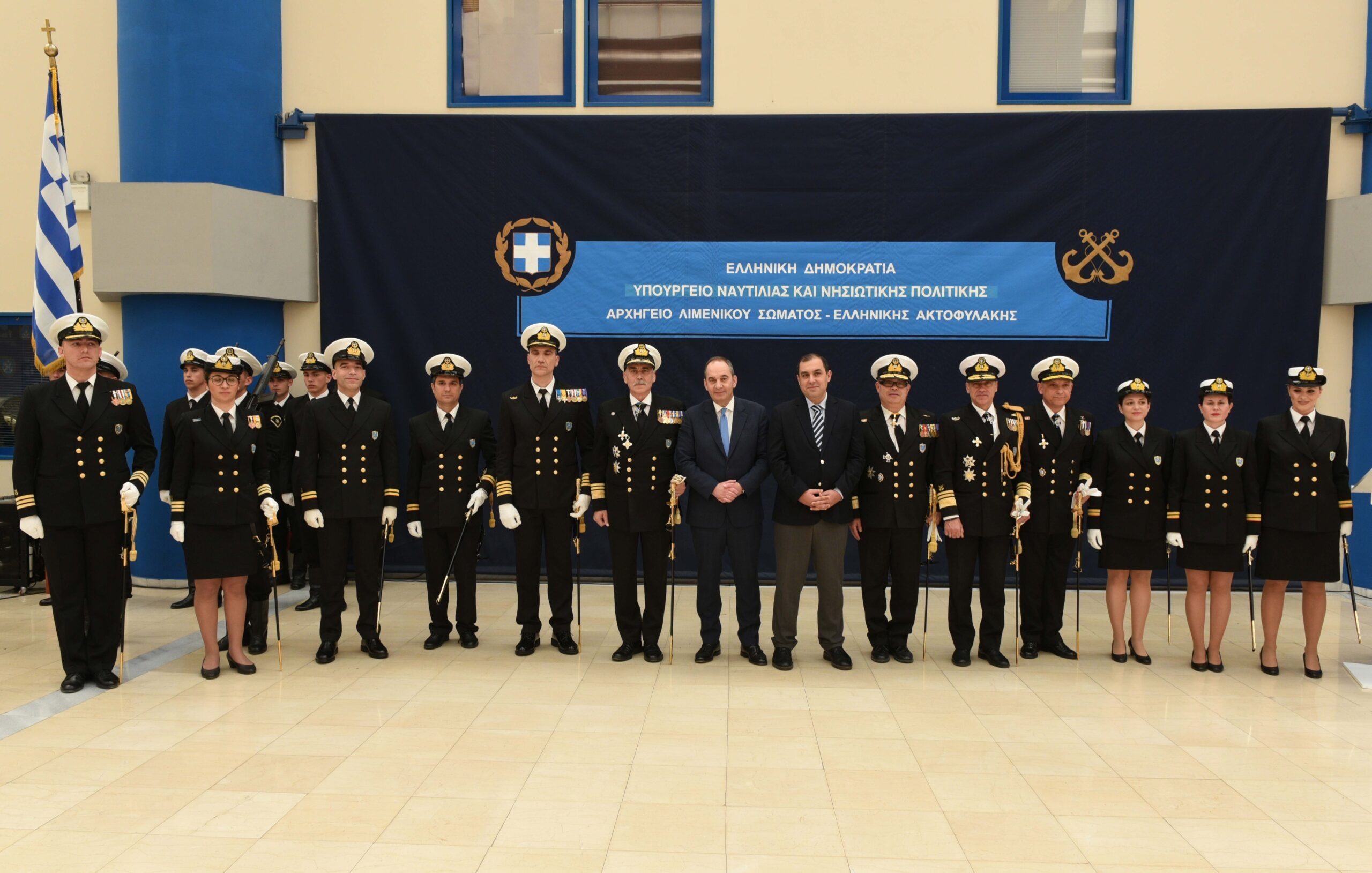 Στην τελετή παρέστησαν επίσης ο Β΄ Υπαρχηγός Λ.Σ.-ΕΛ.ΑΚΤ. Αντιναύαρχος Λ.Σ. Πανταζόγλου Αριστείδης, ο Γενικός Επιθεωρητής Λιμενικού Σώματος Υποναύαρχος Λ.Σ. Μάζης Αντώνιος, ο Διευθυντής Υπηρεσίας Υγειονομικού Λ.Σ.-ΕΛ.ΑΚΤ. Υποναύαρχος Λ.Σ. (ΥΙ) Κωνσταντέλλος Γεώργιος, ο Διευθυντής του Ναυτικού Νοσοκομείου Αθηνών Αρχιπλοίαρχος (ΥΙ) Σωτήριος Μωραΐτης Π.Ν., ο Διοικητής του Σχολείου Πλοίαρχος Λ.Σ. Προκοπίου Παντελής καθώς και ανώτατοι και ανώτεροι