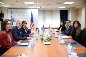 Ο Υπουργός Ανάπτυξης, Τάκης Θεοδωρικάκος, υποδέχθηκε στο Υπουργείο την Πρέσβη των Ηνωμένων Πολιτειών της Αμερικής, Kimberly Guilfoyle, στο πλαίσιο της ενίσχυσης της διμερούς συνεργασίας στους τομείς των επενδύσεων, της ναυπηγικής βιομηχανίας και του εμπορίου. Στη συνάντηση επισημάνθηκε η σημασία της στρατηγικής σχέσης Ελλάδας – ΗΠΑ και οι δυνατότητες ανάπτυξης κρίσιμων υποδομών στην ελληνική οικονομία.