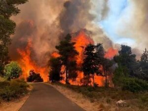 Την ίδια στιγμή, μεγάλη φωτιά ξέσπασε στην Αχαΐα αναγκάζοντας τις αρχές να προχωρήσουν σε εκκενώσεις οικισμών ενώ και το λιμενικό απομάκρυνε ανθρώπους από τις παραλίες.