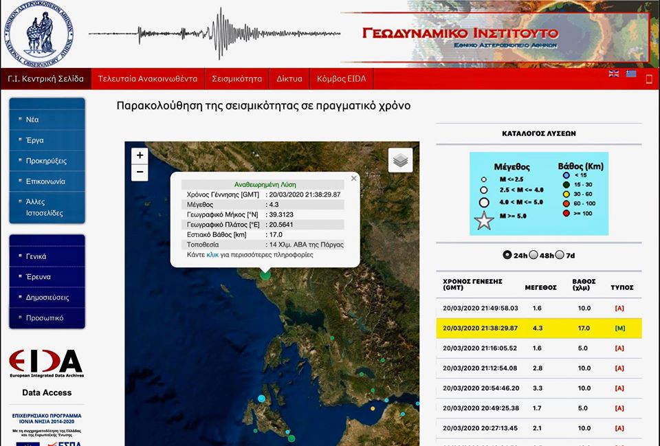 Η δημοσίευση του Γεράσιμου Χουλιάρα στο fb ”Παρακολουθούμε την εξέλιξη του ισχυρού σεισμού των 5,6 Ρίχτερ στην Πάργα από το σεισμολογικό δίκτυο του Γεωδυναμικού Ινστιτούτου. Ήταν αναμενόμενος ο σεισμός στην δυτική Ελλάδα αν θυμόσαστε τους προσεισμούς σε Πάργα και Καρδίτσα τους τελευταίους μήνες και δεν προβλέπεται από της αναλύσεις μου εξέλιξη σε μεγαλύτερο μέγεθος αυτή τη στιγμή, να μην ανησυχείτε”