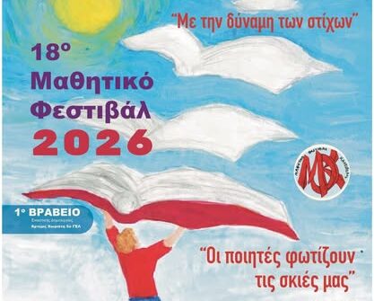 Την Παρασκευή, 13 Μαρτίου 2026, ανοίγει τις πύλες του το 18ο Μαθητικό Φεστιβάλ Καλλιθέας, με φετινό θέμα «Με τη δύναμη των στίχων». Πρόκειται για μια μεγάλη γιορτή πολιτισμού, που συγκεντρώνει μαθητές, εκπαιδευτικούς και γονείς για να γιορτάσουν τη δημιουργικότητα και την τέχνη σε κάθε της μορφή.