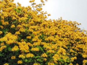 Μοναδική λοιπόν, στην Ελλάδα και στην Λέσβο η πανέμορφη κίτρινη αζαλέα (Rododendron luteum) στα ηφαιστειακά πετρώματα της δυτικής χερσονήσου του νησιού των Αιόλων, στην Αιολική γη.
