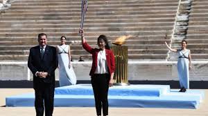 Στη συνέχεια, η Σαόρι Γιοσίντα και ο Τανταχίρο Νομούρα, τρεις φορές χρυσοί Ολυμπιονίκες σε πάλη και τζούντο, αντίστοιχα, άναψαν τον βωμό.