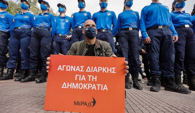 Αντιπροσωπεία του ΜέΡΑ 25 με επικεφαλής τον Γιάνη Βαρουφάκη πραγματοποίησε συγκέντρωση έξω από το Πολυτεχνείο, απ’ όπου ξεκίνησε πορεία.