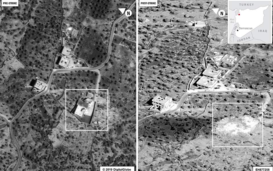 Το πιο δραματικό πλάνο καταγράφει μία στήλη μαύρου καπνού να ανυψώνεται από το έδαφος κι αφού οι αμερικανικές βόμβες είχαν ισοπεδώσει του κρησφύγετο του Μπαγκντάντι.