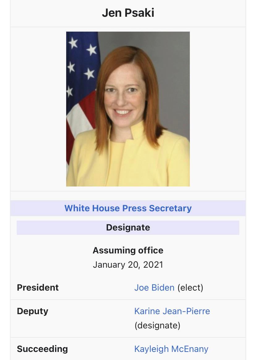 Honored to work again for @JoeBiden, a man I worked on behalf of during the Obama-Biden Admin as he helped lead economic recovery, rebuilt our relationships with partners (turns out good practice) and injected empathy and humanity into nearly every meeting I sat in.— Jen Psaki (@jrpsaki) November 29, 2020
