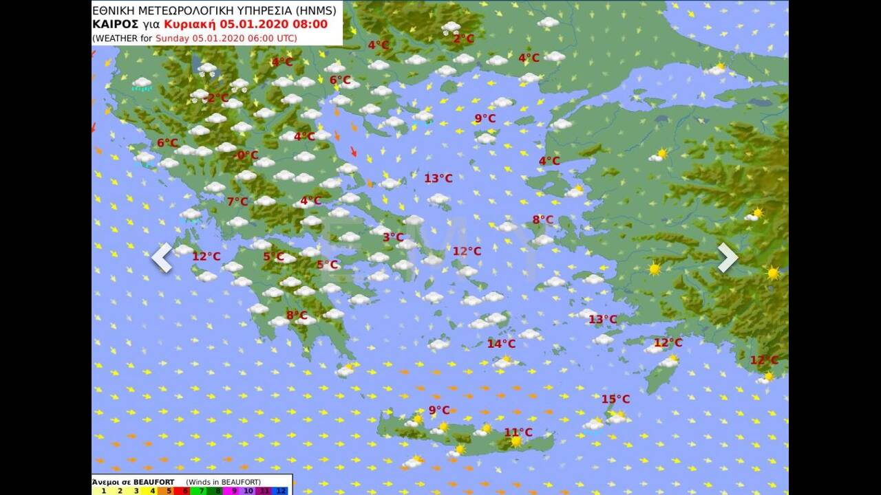 Καιρός: Νεφώσεις με τοπικές βροχές. Παροδικές χιονοπτώσεις θα σημειωθούν στα ορεινά, καθώς και στα ημιορεινά της Κρήτης. Σποραδικές καταιγίδες θα εκδηλωθούν κυρίως μετά το μεσημέρι.