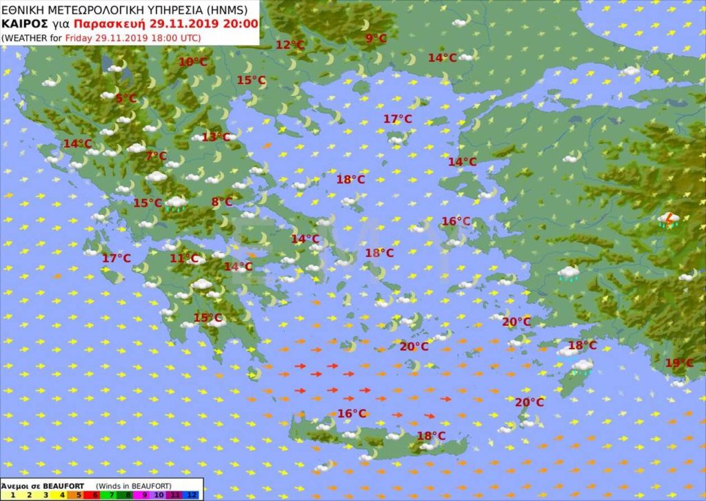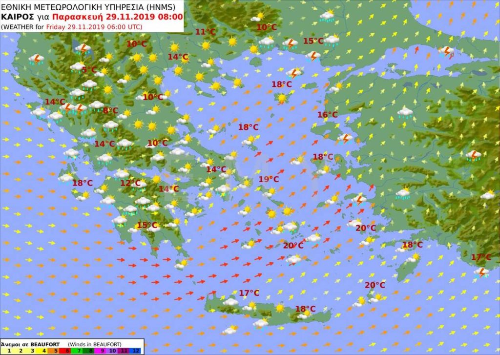 Αναλυτικά η πρόγνωση του καιρού από την Εθνική Μετεωρολογική Υπηρεσία για την Παρασκευή 29 Νοεμβρίου
