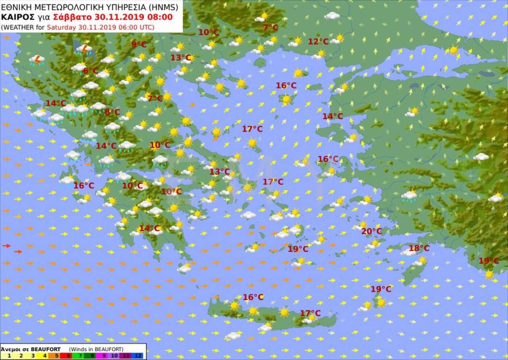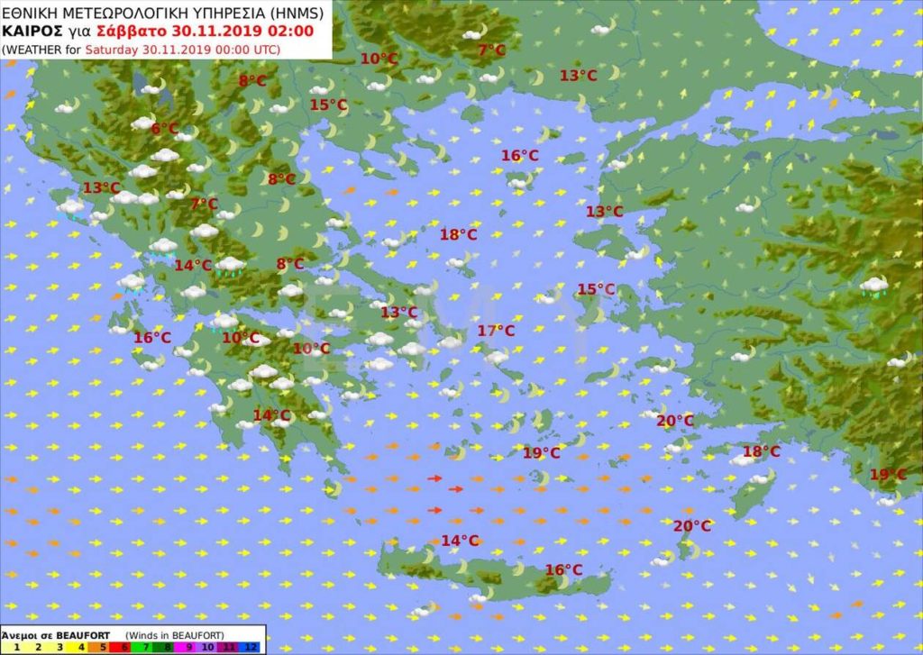 Άνεμοι: Δυτικοί νοτιοδυτικοί 5 με 6 μποφόρ.