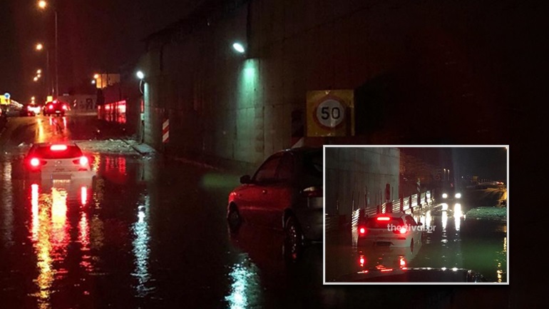 Δύο οχήματα εγκλωβίστηκαν στην Εσωτερική Περιφερειακή της Θεσσαλονίκης, στο ύψος του Ευόσμου.