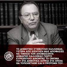 Αποχαιρετούμε σήμερα έναν μεγάλο Καλλιθεάτη, τον Δήμαρχο Γιώργο Κυριόπουλο.