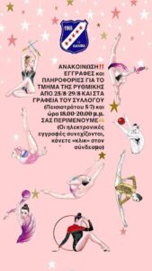 Παράλληλα, έχουν αρχίσει οι εγγραφές για τα τμήματα Ενόργανης Γυμναστικής, με την έναρξη των προπονήσεων να ανακοινώνεται τις επόμενες ημέρες. Οι νέοι και νέες ενδιαφερόμενοι μπορούν να εγγραφούν είτε online, επιλέγοντας «Ενόργανη» στη φόρμα της ιστοσελίδας, είτε δια ζώσης στο Γραφείο Ενόργανης Γυμναστικής, που βρίσκεται εντός του Δημοτικού Σταδίου Καλλιθέας, δίπλα στην Αίθουσα «ΒΑΣΙΛΙΚΗ ΜΙΛΛΟΥΣΗ». Εκεί οι αθλητές μπορούν να συμπληρώσουν τα απαραίτητα έντυπα και να παραλάβουν τα προγράμματα προπονήσεων. Επίσης μπορουν να πάνε η επικοινωνήσουν (21 0941 4704) με τα γραφεία του Συλλόγου Πεισιστράτου 5 απογευματινές ώρες