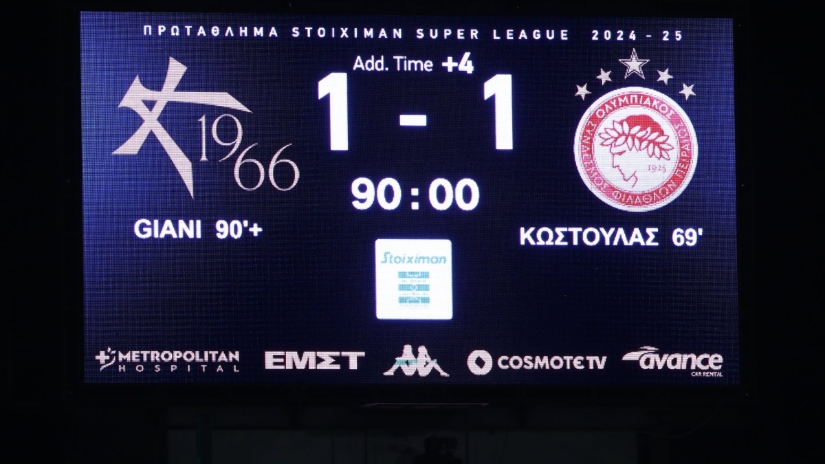Ωστόσο, στο 92ο λεπτό ήρθε το 1-1 και το… σοκ για την άμυνα του Ολυμπιακού. Ο Ματίγια εκτέλεσε το κόρνερ, ο Τζιάνι πήρε χωρίς αντίπαλο την κεφαλιά και σημείωσε το γκολ της ισοφάρισης στους γηπεδούχους.