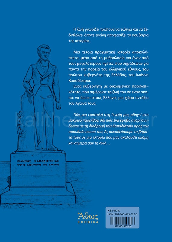 Η ζωή γνωρίζει τρόπους να τυλίγει και να ξεδιπλώνει όποτε εκείνη αποφασίζει τα κουβάρια της ιστορίας. Μια τέτοια πραγματική ιστορία αποκαλύπτεται μέσα από τη μυθοπλασία για έναν από τους μεγαλύτερους ηγέτες που σημάδεψαν για πάντα την πορεία του ελληνικού έθνους, του πρώτου Κυβερνήτη της Ελλάδας, του Ιωάννη Καποδίστρια. Ενός Κυβερνήτη με οικουμενική προσωπικότητα που αφιέρωσε τη ζωή του σε έναν σκοπό: να δώσει στους Έλληνες μια χώρα αντάξια του Αγώνα τους. Πρόκειται για ένα ιστορικό μυθιστόρημα, εμπνευσμένο μέσα από μακρά μελέτη πληθώρας ιστορικών πηγών ώστε να προσφέρει στον αναγνώστη πτυχές του ιστορικού σκηνικού, αλλά δοσμένες με απλότητα, ευαισθησία και σεβασμό στα πρόσωπα που αγγίζει.