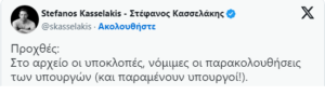 «Προχθές: Στο αρχείο οι υποκλοπές, νόμιμες οι παρακολουθήσεις των υπουργών (και παραμένουν υπουργοί!).