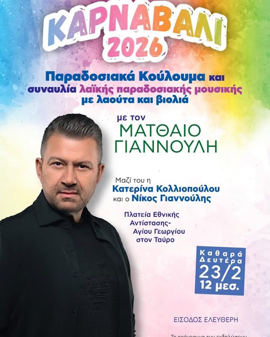 Η εκδήλωση θα πραγματοποιηθεί τη Δευτέρα 23 Φεβρουαρίου 2026 στην πλατεία Εθνικής Αντίστασης (Αγίου Γεωργίου) στον Ταύρο, με ώρα έναρξης στις 11:00 το πρωί. Το πρόγραμμα κορυφώνεται στις 12:00 με ζωντανή συναυλία και παραδοσιακό γλέντι.