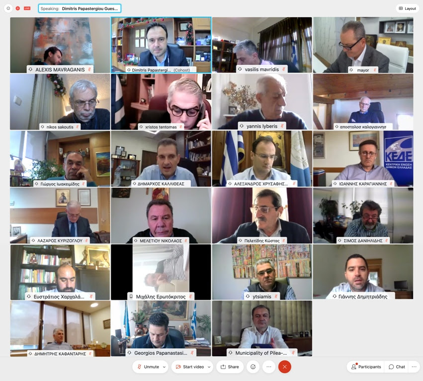 Συνεδρίασε την Πέμπτη (17/12) το Δ.Σ. της Κεντρικής Ένωσης Δήμων Ελλάδος, μέσω τηλεδιάσκεψης, με την παρουσία Προέδρων από Περιφερειακές Ενώσεις Δήμων από όλη τη χώρα.
