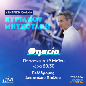Σας προσκαλούμε στην κεντρική ομιλία του Πρωθυπουργού και Προέδρου της Νέας Δημοκρατίας Κυριάκου Μητσοτάκη στο Θησείο την Παρασ