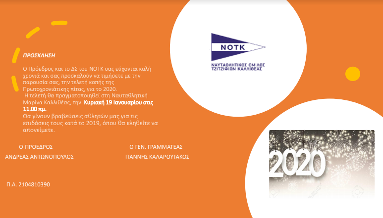 Την κοπή της πίτας του θα πραγματοποιήσει στις 19/1/2019 στις 11:00 στη Ναυταθλητική Μαρίνα Καλλιθέας ο Ναυταθλητικός Σύλλογος Τζιτζιφιών Καλλιθέας