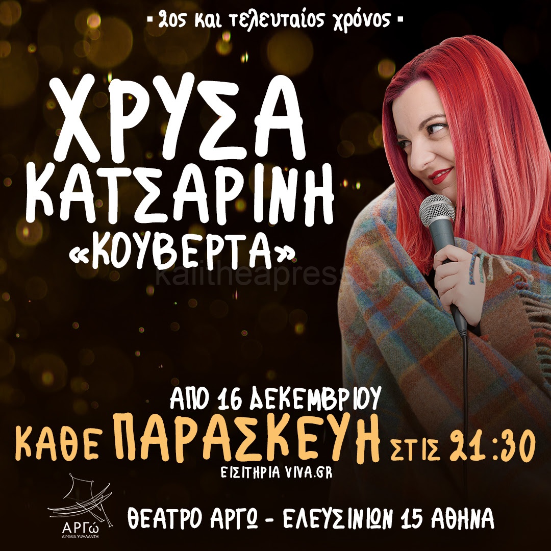 Μετά την πρώτη επιτυχημένη σεζόν της παράστασής της, με sold out εμφανίσεις στο θέατρο Αθηναϊς, περιοδεια σε 31 πόλεις της Ελλάδας και 11 πόλεις της Ευρώπης, η Χρύσα Κατσαρίνη επιστρέφει στην Αθήνα στο θέατρο Αργώ, κάθε Παρασκευή από 16 Δεκεμβρίου.