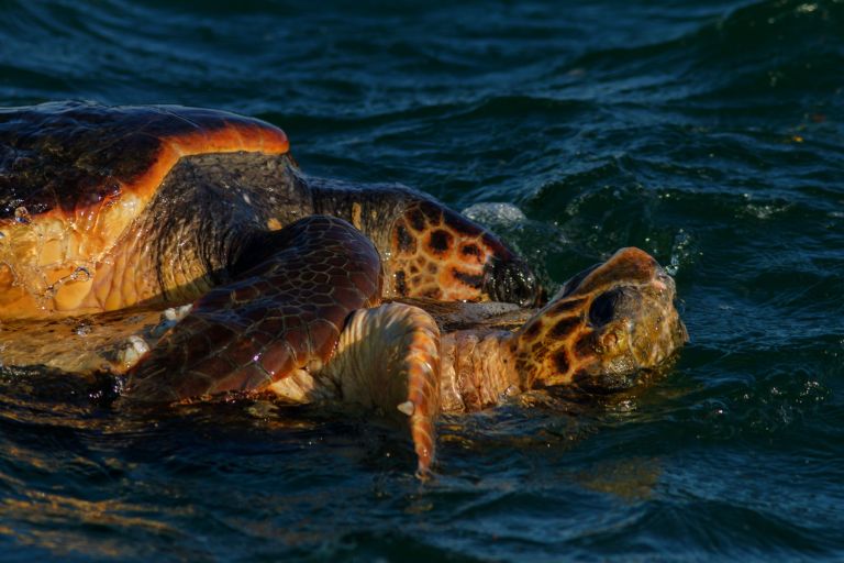 Θαλάσσιες χελώνες Caretta caretta ζευγαρώνουν στο Φαληρικό Δέλτα! Το φαινόμενο παρατηρήθηκε πέρυσι αλλά και εφέτος την άνοιξη. Το προστατευόμενο αυτό είδος επισκέπτεται συχνά κλειστούς παραγωγικούς κόλπους με εύτροφα νερά, όπως ο Αμβρακικός, αλλά κανένας δεν φανταζόταν ότι θα είχε τακτική παρουσία έξω από την εκβολή του Κηφισού. Πιθανότατα οι χελώνες εισέρχονται στον κλειστό όρμο για να τραφούν με μύδια και άλλα ασπόνδυλα που ευδοκιμούν εδώ.