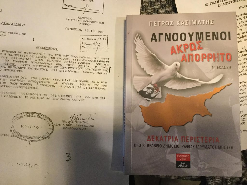 Το συγκλονιστικότερο βιβλίο της τελευταίας 20ετίας στην Ελλάδα το “Αγνοούμενοι-Άκρως Απόρρητο” (εκδόσεις Λιβάνη) του σπουδαίου ρεπόρτερ Πέτρου Κασιμάτη που μιλά για τα “13 Περιστέρια” την κωδική επιχείρηση απελευθέρωσης Ελλαδιτών και Ελληνοκυπρίων αιχμαλώτων του Αττίλα, κατάφερε να “επιβιώσει”.