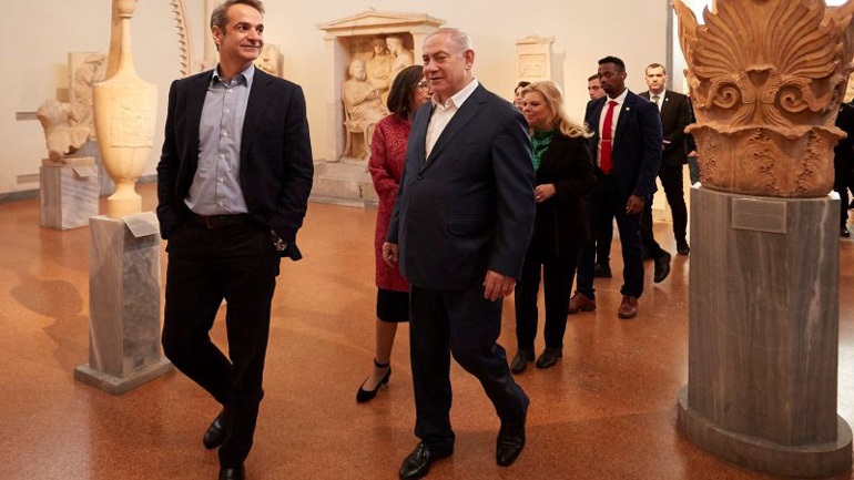Μερικούς από τους πολυτιμότερους θησαυρούς του αρχαίου ελληνικού πολιτισμού είχαν την ευκαιρία να θαυμάσουν ο πρωθυπουργός Κυριάκος Μητσοτάκης και ο ομόλογός του από το Ισραήλ, Μπενιαμίν Νετανιάχου, οι οποίοι ξεναγήθηκαν στο Εθνικό Αρχαιολογικό Μουσείο από την διευθύντρια Μαρία Λαγογιάννη, συνοδεία της υπουργού Πολιτισμού και Αθλητισμού Λίνας Μενδώνη.