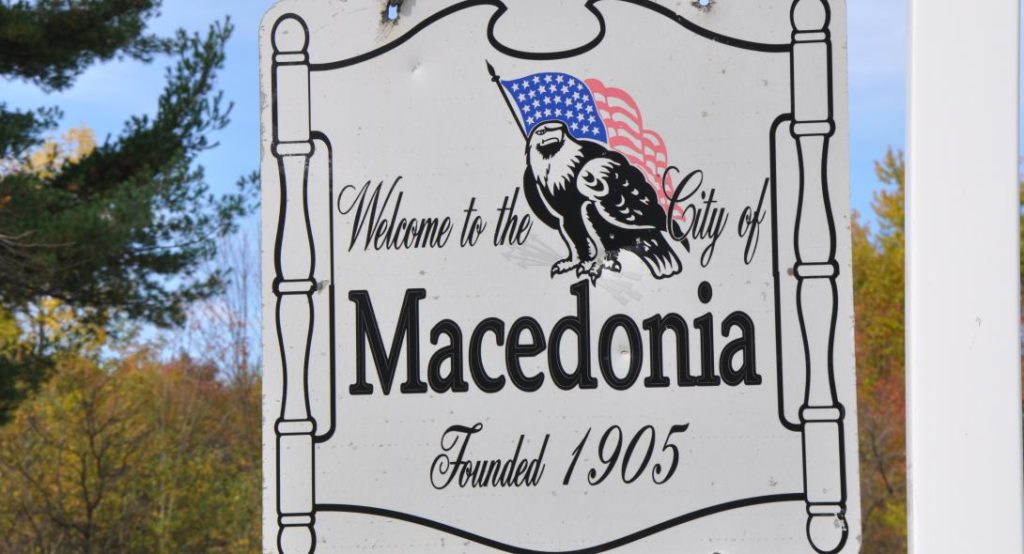 Το όνομα της πόλης φημολογείται ότι προέρχεται από ένα μικρό αστείο ανάμεσα στους φοιτητές του Western Reserve College, το οποίο στις αρχές του 19ου αιώνα ήταν στο Hudson, του Οχάιο. Οι μαθητές, που κλήθηκαν να κηρύξουν στο μικρό χωριουδάκι, υπενθύμισαν την Πράξη 16:10: «… προσπαθήσαμε να πάμε στην Μακεδονία, καταλήγοντας στο συμπέρασμα ότι ο Κύριος μας είχε καλέσει να κηρύξουμε το Ευαγγέλιο σε αυτούς».