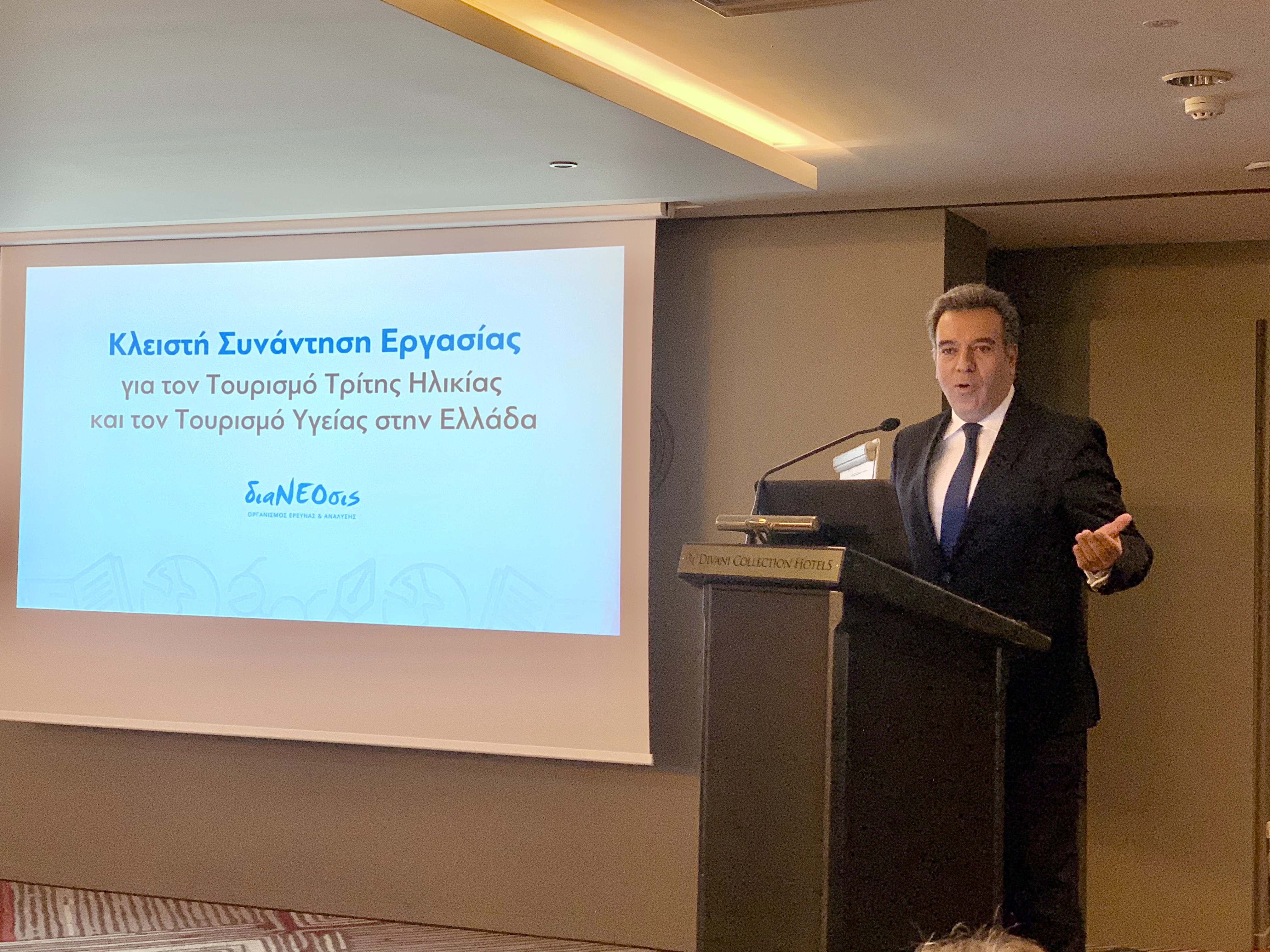 Στην κλειστή συνάντηση εργασίας για την παρουσίαση και τον σχολιασμό των ευρημάτων και των συμπερασμάτων που προκύπτουν από την έρευνα της διαΝΕΟσις για τον Τουρισμό Τρίτης Ηλικίας και τον Τουρισμό Υγείας στην Ελλάδα, παρευρέθηκε ο Υφυπουργός Τουρισμού, κ. Μάνος Κόνσολας, καταθέτοντας το σχεδιασμό του Υπουργείου για την ανάπτυξη του τουρισμού υγείας.