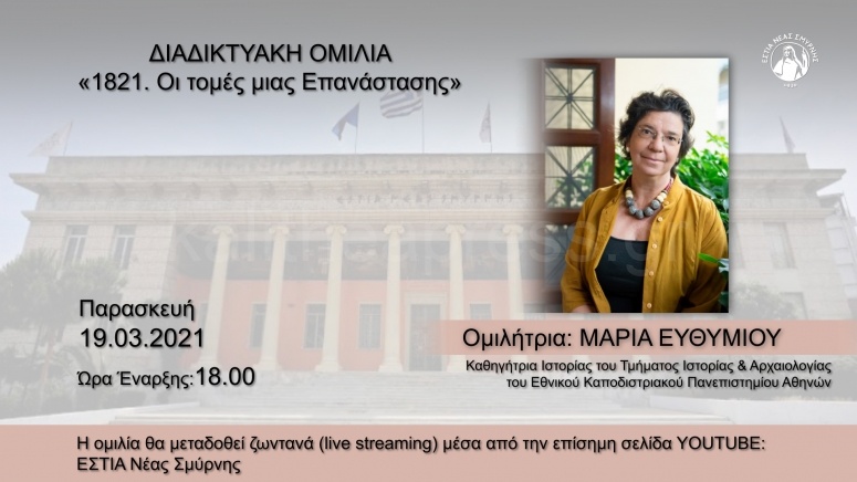 στη διαδικτυακή ομιλία της κας Μαρίας Ευθυμίου, Καθηγήτριας Ιστορίας & Αρχαιολογίας του Εθνικού Καποδιστριακού Πανεπιστημίου Αθηνών, με θέμα: