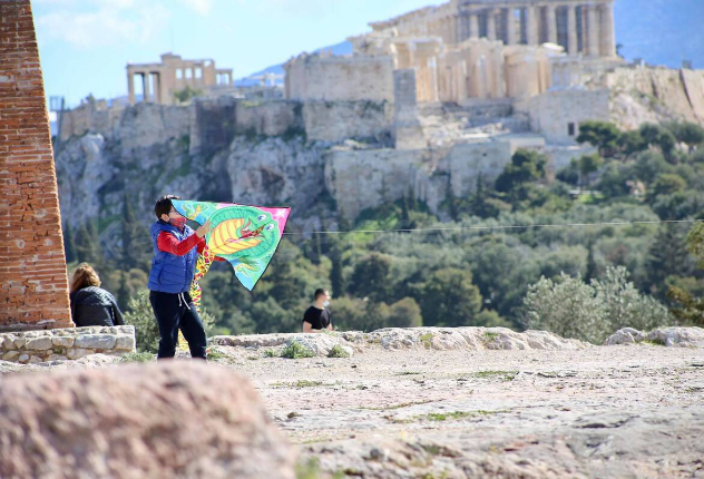 Πριν στρώσουν το σαρακοστιανό τραπέζι, οι Αθηναίοι βγήκαν σε πάρκα και πλατείες της γειτονιάς τους για να πετάξουν χαρταετό τηρώντας τις αποστάσεις και λαμβάνοντας τα απαραίτητα μέτρα προστασίας κατά του κορονοϊού.