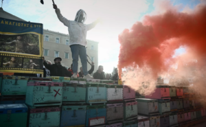Στο Σύνταγμα βρίσκονται από το πρωί και φορτηγά τα οποία έχουν καταλάβει την αριστερή λωρίδα κυκλοφορίας με τους μελισσοκόμους να τοποθετούν κυψέλες μπροστά από το Μνημείο του Αγνώστου Στρατιώτη.