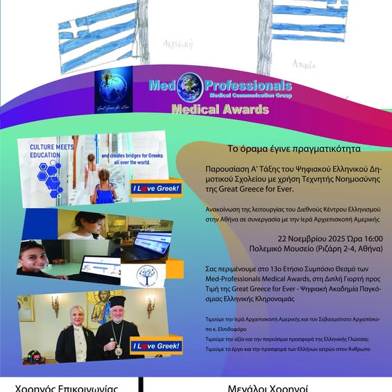 Τη δράση του αυτή στηρίζουν η Αρχιεπισκοπή Αμερικής, με Μνημόνιο Συνεννόησης που υπεγράφη στη Νέα Υόρκη, ο Οργανισμός ΑΧΕΠΑ – το Ομογενειακό Σωματείο Daughters of Penelope – Promachos Athena, Chapter 410 θέτοντας υπό την αιγίδα του το ψηφιακό σχολείο για τα Ελληνόπουλα, απανταχού Σύλλογοι, Ομοσπονδίες, Οργανισμοί, και χιλιάδες απλοί Άνθρωποι στην Ελλάδα και στο Εξωτερικό, αλλά και η Hellenic News of Amerika. Η Kalithea Press, έχει την χαρά να είναι ανάμεσα στους χορηγούς επικοινωνίας, στο πλαίσιο αυτό συμβάλει στην προβολή της εκδήλωσης, φέρνοντας στο προσκήνιο την ελληνική καινοτομία, την τεχνολογία και την αριστεία στην υγεία και τις επιχειρήσεις.