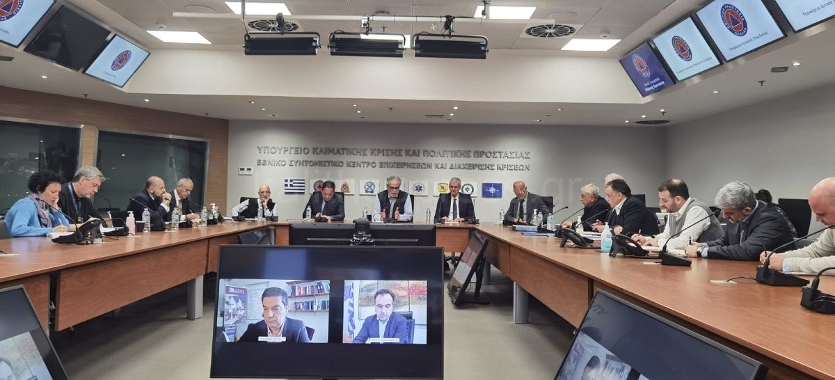Η σύσκεψη πραγματοποιήθηκε υπό τον Υπουργό Χρήστο Στυλιανίδη, με τη συμμετοχή του Αναπληρωτή Υπουργού Εσωτερικών Στέλιου Πέτσα, του Υφυπουργού Κλιματικής Κρίσης και Πολιτικής Προστασίας Ευάγγελου Τουρνά, του Υφυπουργού Χωροταξίας και Αστικού Περιβάλλοντος Νικόλαου Ταγαρά και του Γενικού Γραμματέα Πολιτικής Προστασίας Βασίλειου Παπαγεωργίου.