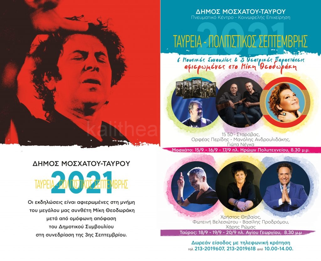 Οι εκδηλώσεις πραγματοποιήθηκαν στο Μοσχάτο (Σινέ Κήπος και πλατεία Ηρώων Πολυτεχνείου) και στον Ταύρο (Σινέ Μασκώτ και πλατεία Αγίου Γεωργίου) με ελεύθερη είσοδο και ήταν αφιερωμένες στη μνήμη του οικουμενικού Μίκη Θεοδωράκη όπως αποφάσισε το Δημοτικό Συμβούλιο με την ομόφωνη απόφασή του.