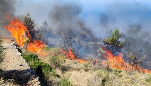 Οι δυνάμεις που επιχειρούν είναι ισχυρές: 42 πυροσβέστες, 5 οχήματα, δύο πεζοπόρα τμήματα, τρία ελικόπτερα και έξι αεροσκάφη.