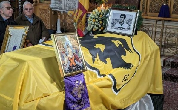 Το τελευταίο «αντίο» είπαν σήμερα, συγγενείς, φίλοι και οπαδοί της ΑΕΚ στον Μίμη Παπαϊωάννου, τον μεγάλο Έλληνα ποδοσφαιριστή που έφυγε από τη ζωή την Τετάρτη σε ηλικία 81 ετών. Στο «αντίο» του Μίμη Παπαϊωάννου συγκεντρώθηκε πλήθος κόσμου. Στο λαϊκό προσκύνημα είχαν προσέρθει παλιοί συμπαίκτες, όπως ο Θωμάς Μαύρος, ο Στέλιος Μανωλάς, ο Ντούσαν Μπάγεβιτς, o Λάκης Νικολάου και ο Κώστας Νεστορίδης ο οποίος λύγισε και ξέσπασε σε λυγμούς πάνω από το φέρετρο του φίλου του. Εκεί ήταν και αντίπαλοι, εξίσου σπουδαίοι, όπως ο Αντώνης Αντωνιάδης και ο έτερος μεγάλος Μίμης του ελληνικού ποδοσφαίρου, ο Δομάζος. Το «παρών» έδωσαν αρκετοί ποδοσφαιριστές της Ένωσης, αλλά και αντιπροσωπεία της ομάδας μπάσκετ με επικεφαλής τον αρχηγό Λουκά Μαυροκεφαλίδη.