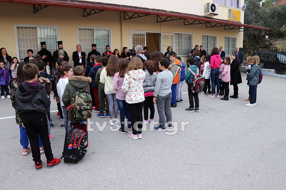 Ο κύριος Συμεών ξεκίνησε την ημέρα του από το πιο μικρό σχολείο της Λαμίας. Στην σύντομη ομιλία του επεσήμανε πως οι μεγάλοι πρέπει να κάνουν τα πάντα για να είναι χαρούμενα τα παιδιά.