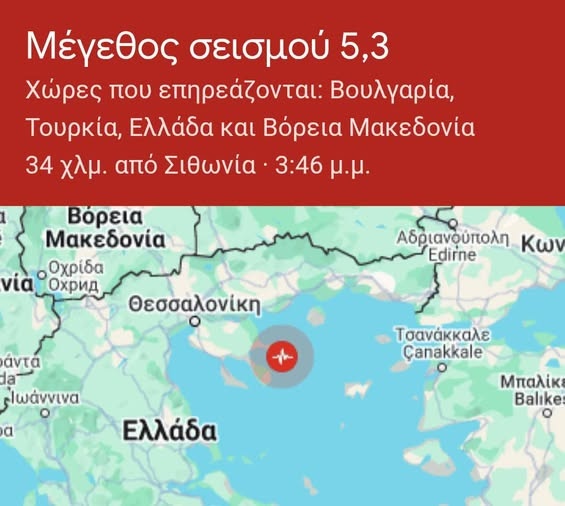 Σήμερα, Σάββατο 7 Ιουνίου 2025 στις 3.46 μμ το Άγιο Όρος ταρακουνήθηκε από έναν σεισμό μεγέθους 5,3 Ρίχτερ. Το επίκεντρο εντοπίστηκε μόλις 9 χιλιόμετρα δυτικά-βορειοδυτικά των Καρυών, σε εστιακό βάθος περίπου 12,5 χιλιομέτρων. Ο σεισμός έγινε ιδιαίτερα αισθητός σε όλη τη Χαλκιδική, τη Θεσσαλονίκη, αλλά και σε άλλες περιοχές της Βόρειας Ελλάδας.