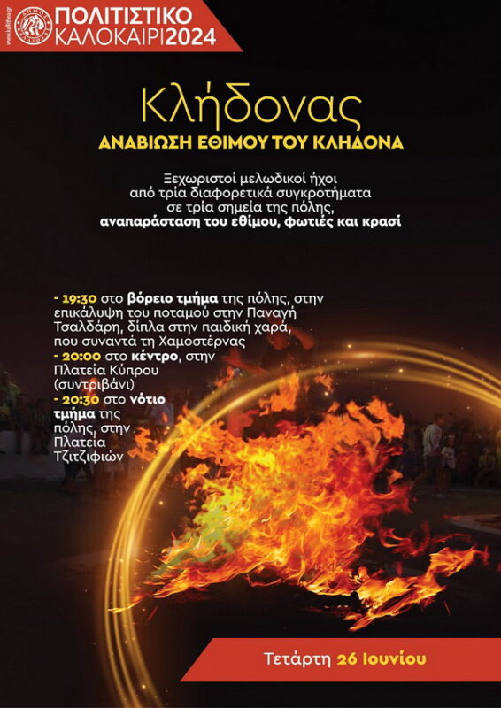 ΤΕΤΑΡΤΗ 26 ΙΟΥΝΙΟΥ 2024 η ΑΝΑΒΙΩΣΗ ΕΘΙΜΟΥ ΤΟΥ ΚΛΗΔΟΝΑ ΣΕ ΤΡΙΑ ΣΗΜΕΙΑ ΤΗΣ ΠΟΛΗΣ